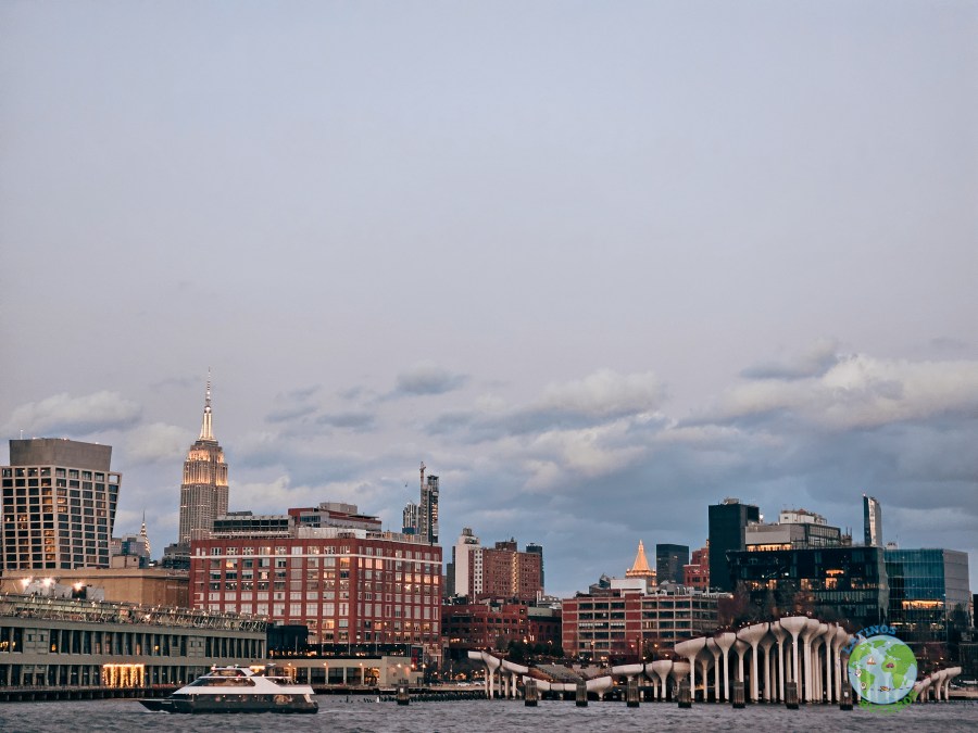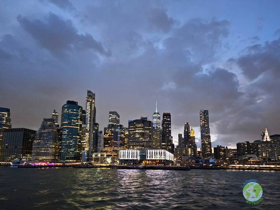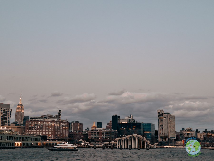 Con esta intro, fuimos al muelle donde se encuentra el Circle Line Sightseeing Cruises; donde hicimos el upgrade para recorrer tanto el río Hudson como el East River al atardecer. El recorrido empezó puntual, el ferry lleno de gente. Mucho frío y viento. Más adentrados en el recorrido se largó a llover y unos pocos nos quedamos en la cubierta viendo la ciudad como se iban encendiendo las luces. Cuando comenzó la vuelta (llega a la altura del puente de Queens; el frío ya era más que molesto por lo que los últimos minutos nos quedamos dentro como la mayoría de las personas.