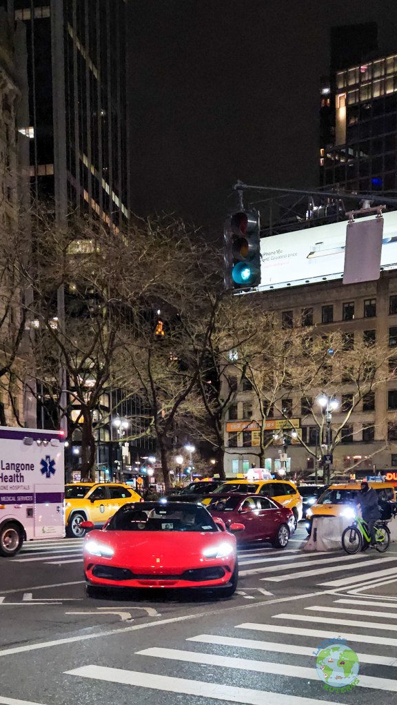 Ya nuevamente en tierra nos tomamos el colectivo del fondo que nos dejó en la 34st y 6th avenida para ir devuelta al hotel, donde se pudo ver un poco más la noche de NY con pasajes de varios autos deportivos, todo por el mismo lugar (finalmente y antes de llegar al hotel, nos desvíamos por un 7eleven para comprar la cena).