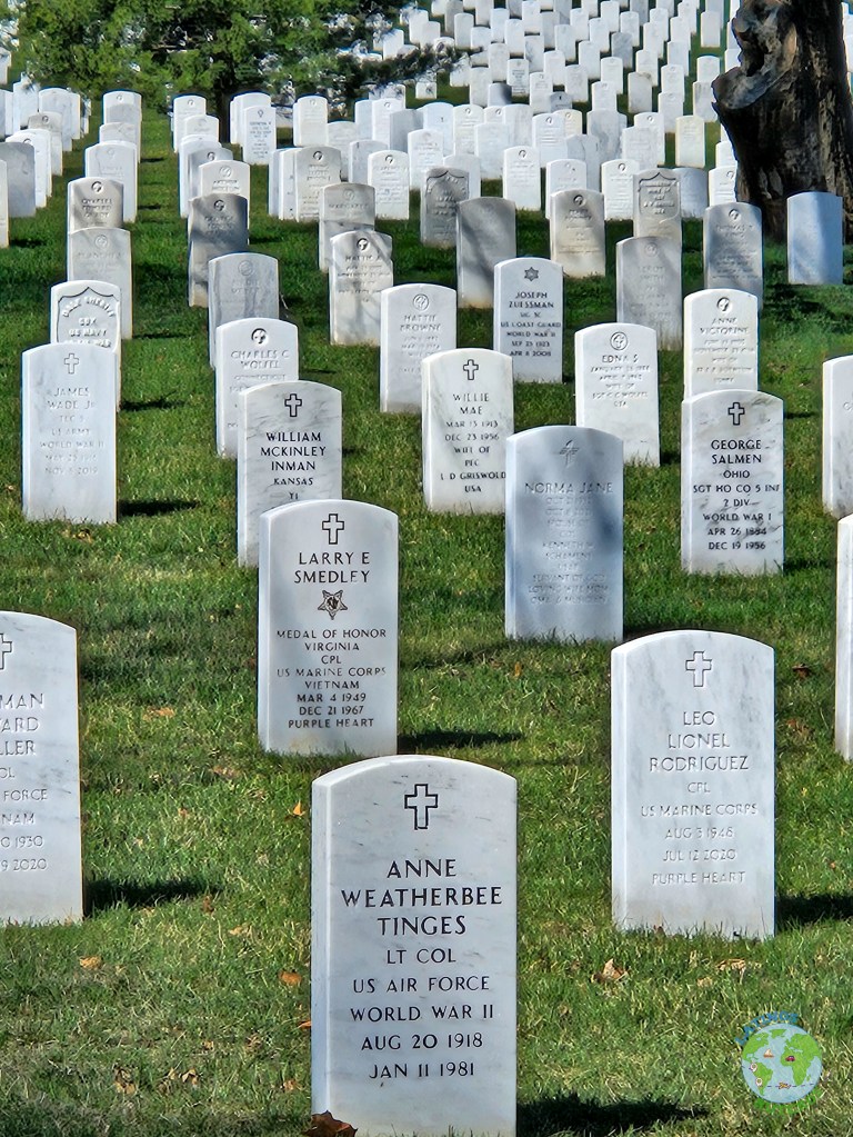 En este cementerio militar, recorrimos a pie algunos caminos, en donde fuimos mirando con respeto varios memoriales, hasta llegar al de la Familia Kennedy (la única presidencial en el cementerio, ya que es militar). Es increíble ver tantas lápidas de personas fallecidas en distintas guerras, condecoraciones y demás.