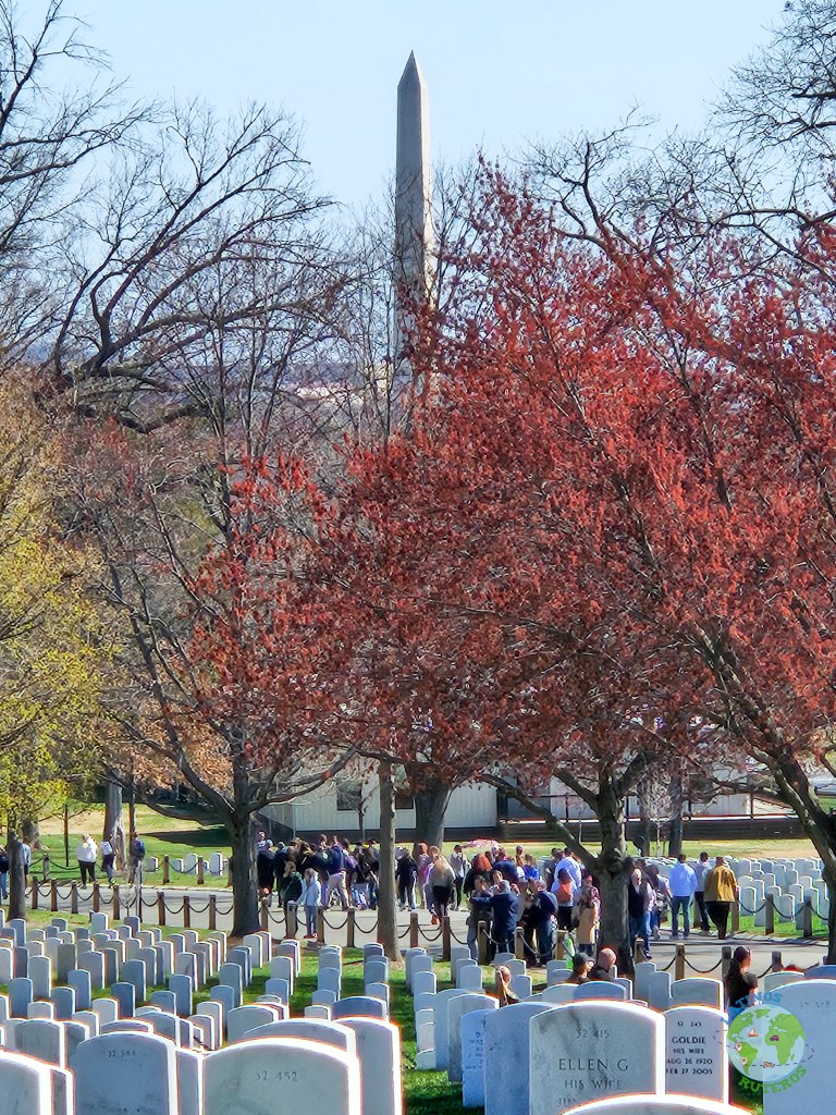 El Monumento, desde el cementerio lo separa el Rio Potomac que justamente unos días antes de viajar salió en las noticias por una colisión de un avión que estaba en fase de aterrizaje del aeropuerto (que está muy cerca y de hecho se ve aviones constantemente despegando), con un helicóptero de la US Army. De hecho, al ver tantos helicópteros sobrevolando (incluyendo el Marine One), es que hacen maniobras de vigilancia, enlace, pero también de entrenamiento.