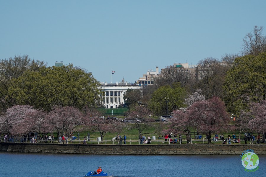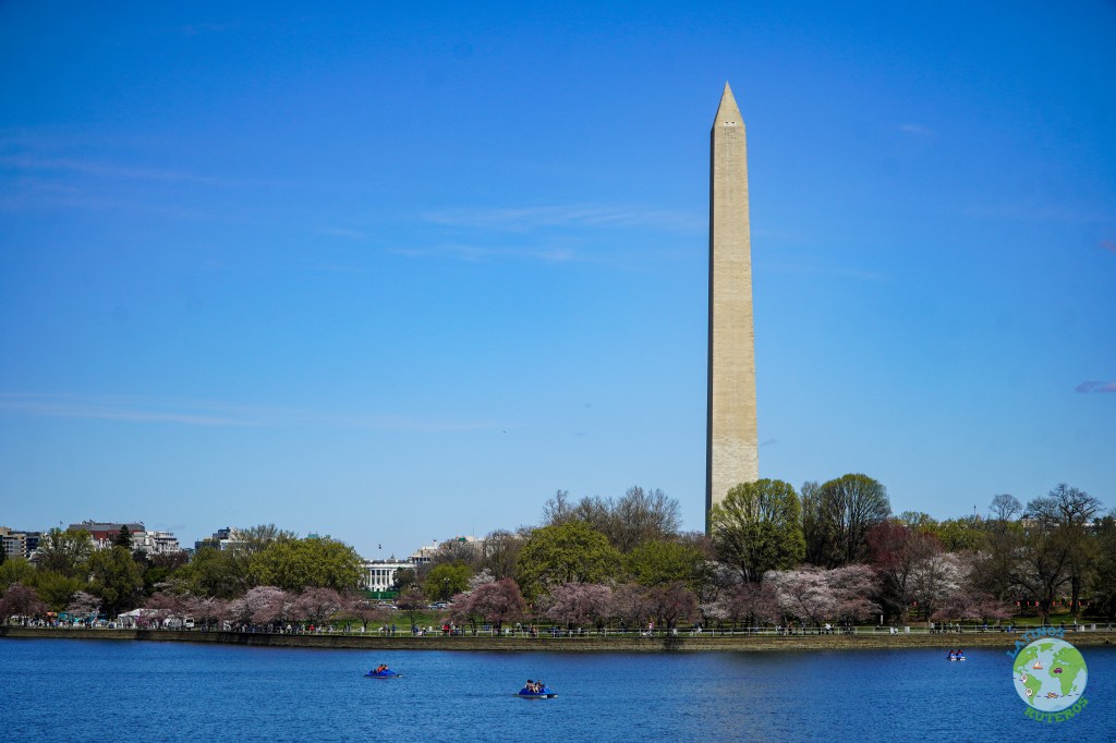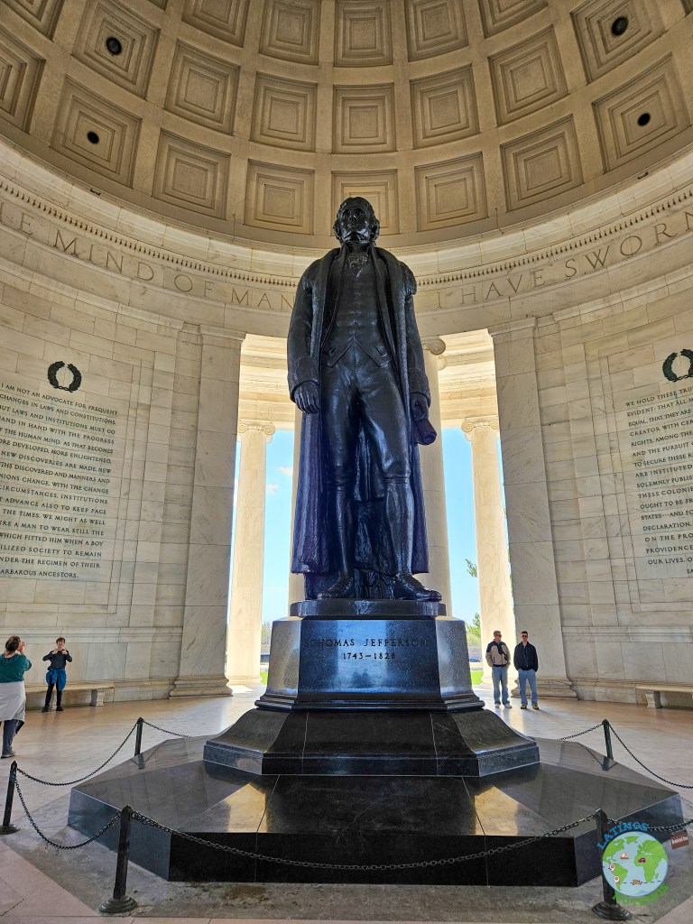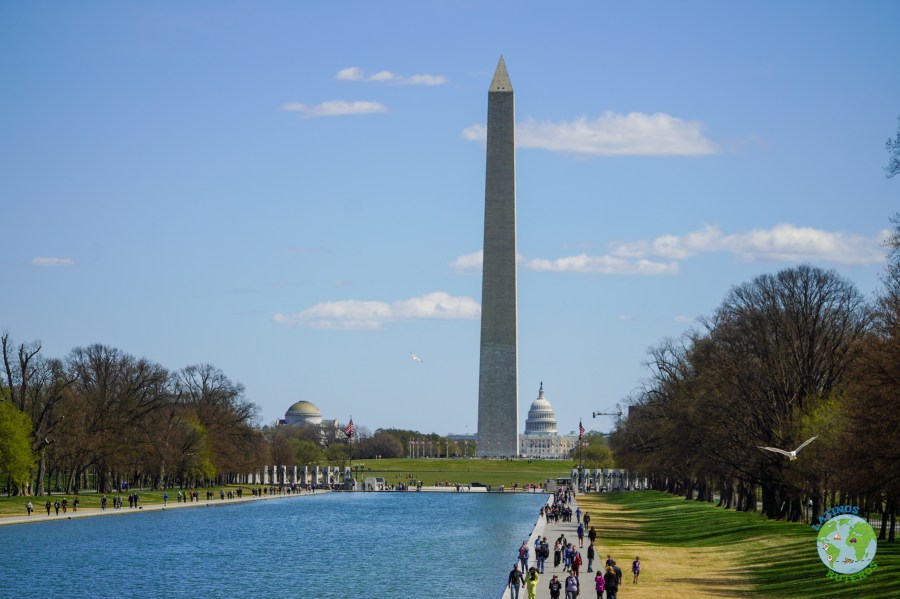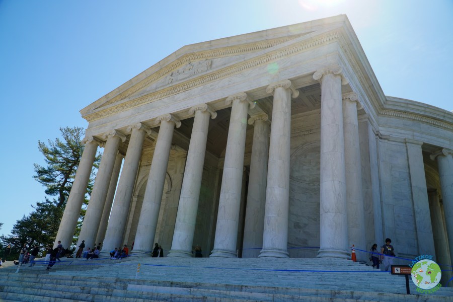 Después de la visita al cementerio nos dirigimos a la próxima parada que es el Memorial de Tomas Jefferson, el cual desde sus escalinatas se ve la parte trasera (la conocida), de la Casa Blanca con el Obelisco a un costado y una gran laguna.