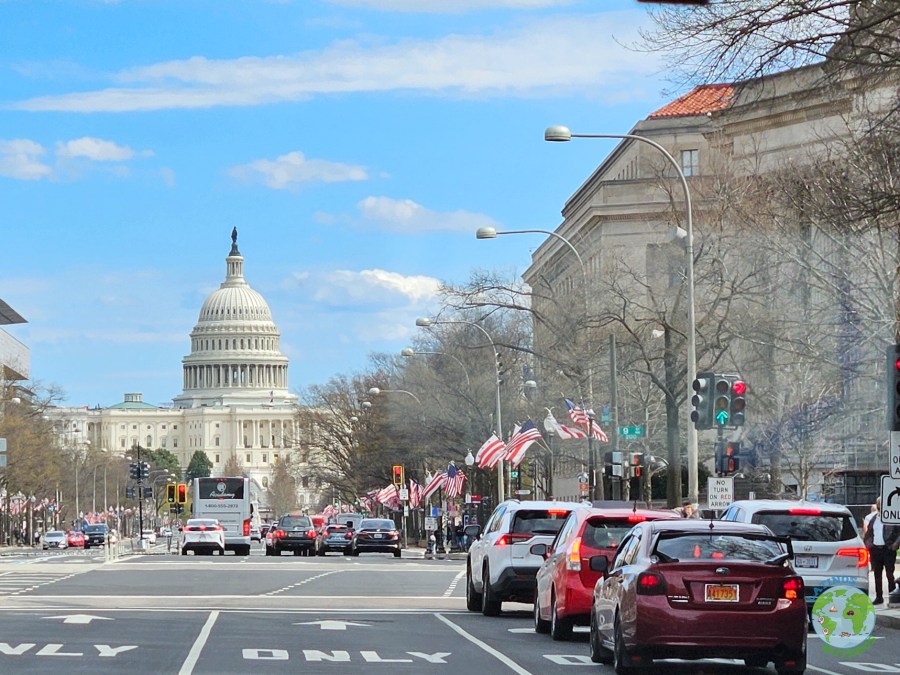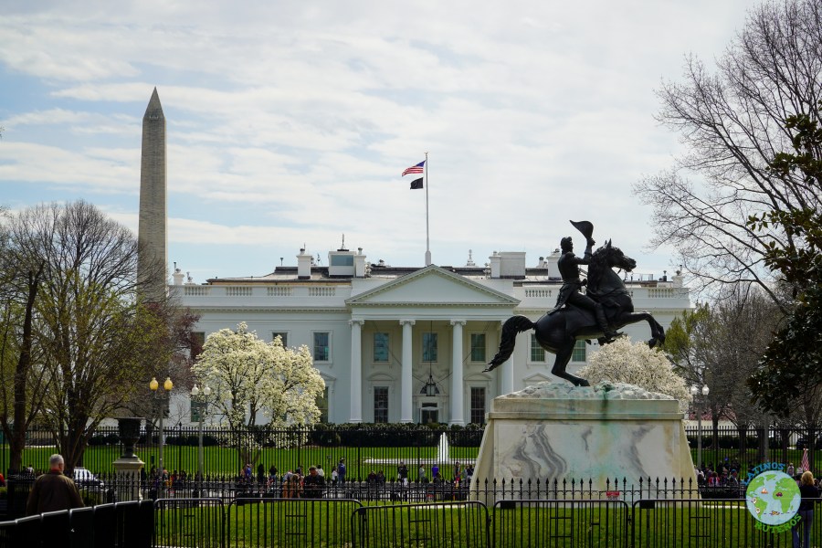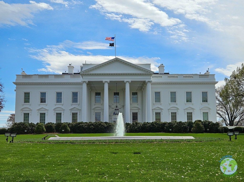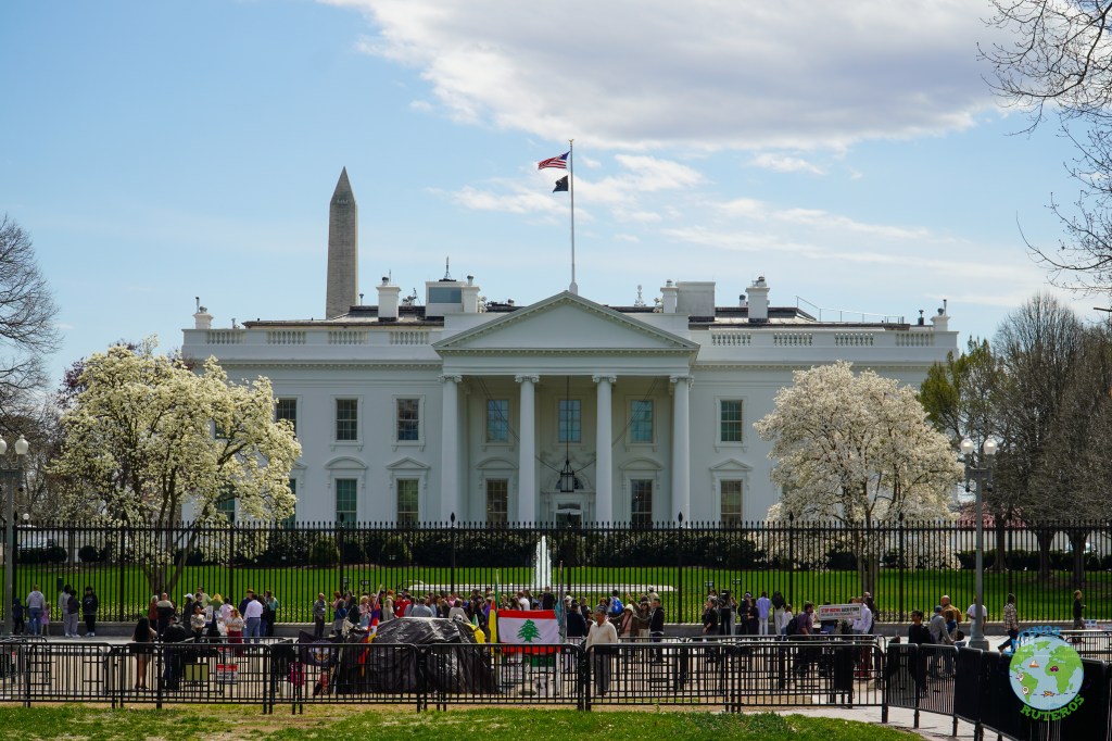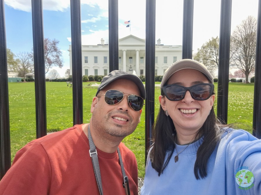 Transcurrido el tiempo, volvimos a la combi (furgoneta, minibus, etc), y partimos rumbo hacia la Casa Blanca. En el camino admiramos varios edificios y el entorno de la ciudad, tan diferente a Nueva York (tienen una reglamentación de edificación de altura restringida). Pasamos cerca del Memorial Continental Hall y del edificio del FBI. Bajamos cerca de los predios de la Casa Blanca, hay una plaza enorme frente a la casa. Esta plaza está abierta, sin tantas vallas, pero pudimos divisar muchas cámaras de seguridad, y gente en los techos. Pudimos avanzar sin ningún problema hasta la cerca y admirar el frente de la Casa Blanca, sin certeza de que el presidente esté ahí. Tomamos un par de fotos, caminamos un poco más por la plaza para volver a la combi y partir hacia el Capitolio.