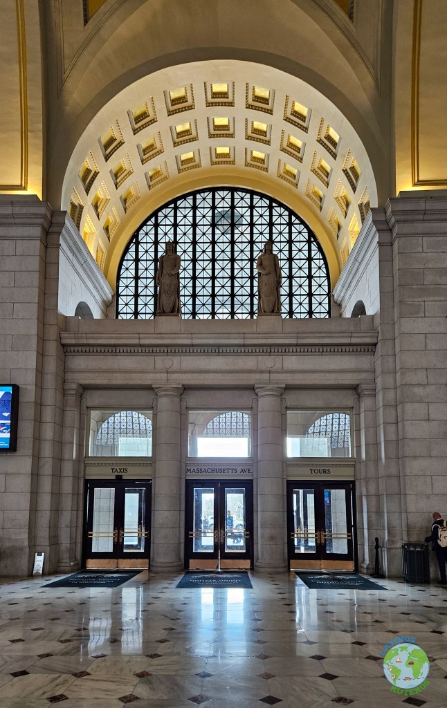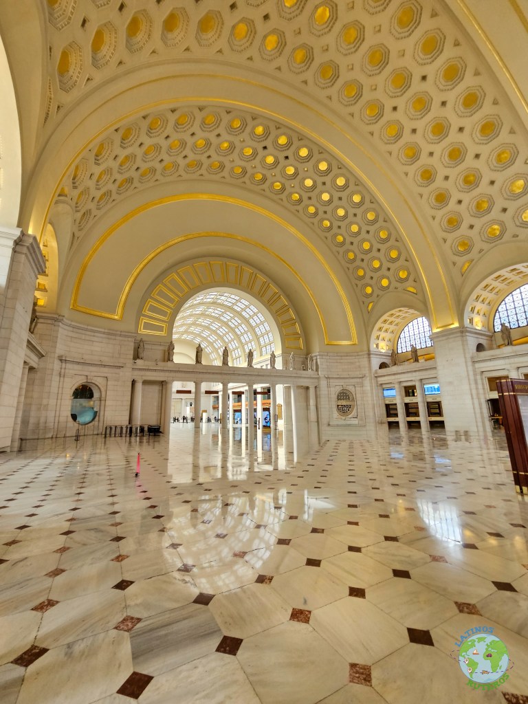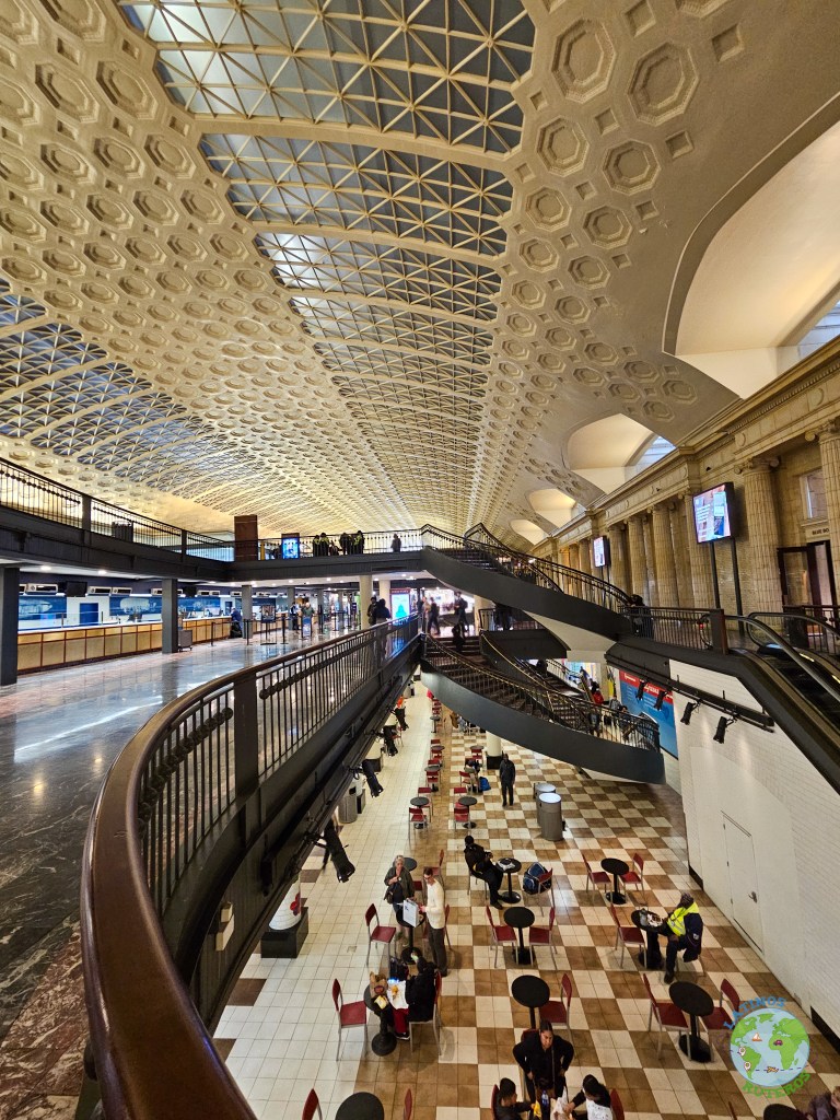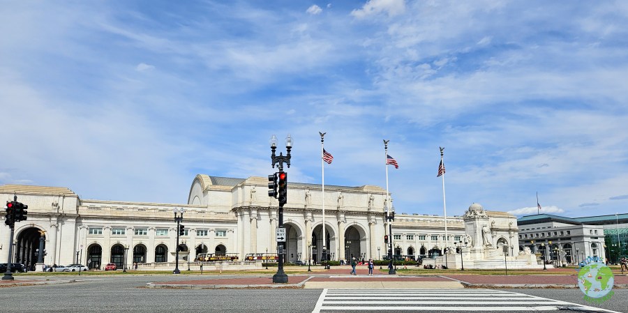 Terminando el tiempo, volvimos a la combi con rumbo hacia Union Station, una imponente estación de tren. En este lugar tuvimos 1 hora, para recorrer el lugar, usar los sanitarios y comer. Nuevamente nuestra opción fue Shake Shack. Pudimos recorrer brevemente la estación, pasando por su gran hall y llegando hasta las tiendas cerca de la boletería. Fuera de la estación se encuentra una réplica de la campana de la Libertad (la que originalmente se encuentra en Filadelfia). Pasado el tiempo volvimos al punto de encuentro, eran aproximadamente las 15:30, listos para emprender el regreso a Nueva York.