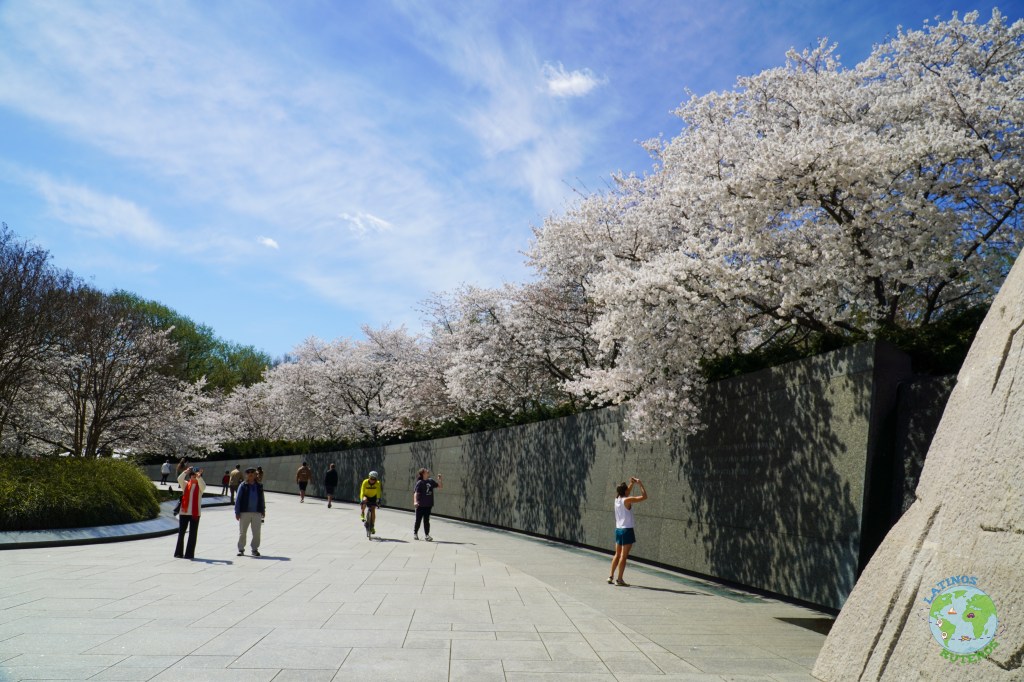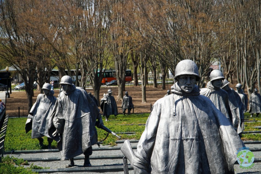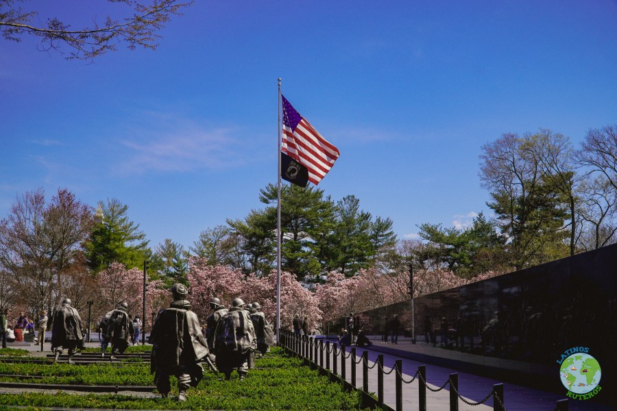 Volvimos hacia la combi hacia la zona del monumento a Martin Luther King. Desde este punto, estábamos en frente del memorial de Tomas Jefferson y pudimos disfrutar del lindo paisaje, rodeado de cerezos florecidos. Seguimos el tour a pie, caminando hacia el Memorial de los veteranos de la guerra de Corea, en donde en un muro están grabados los nombres de los soldados y hay una representación simbólica de los mismos, con 19 soldados a escala real, simulando estar en el campo de batalla.