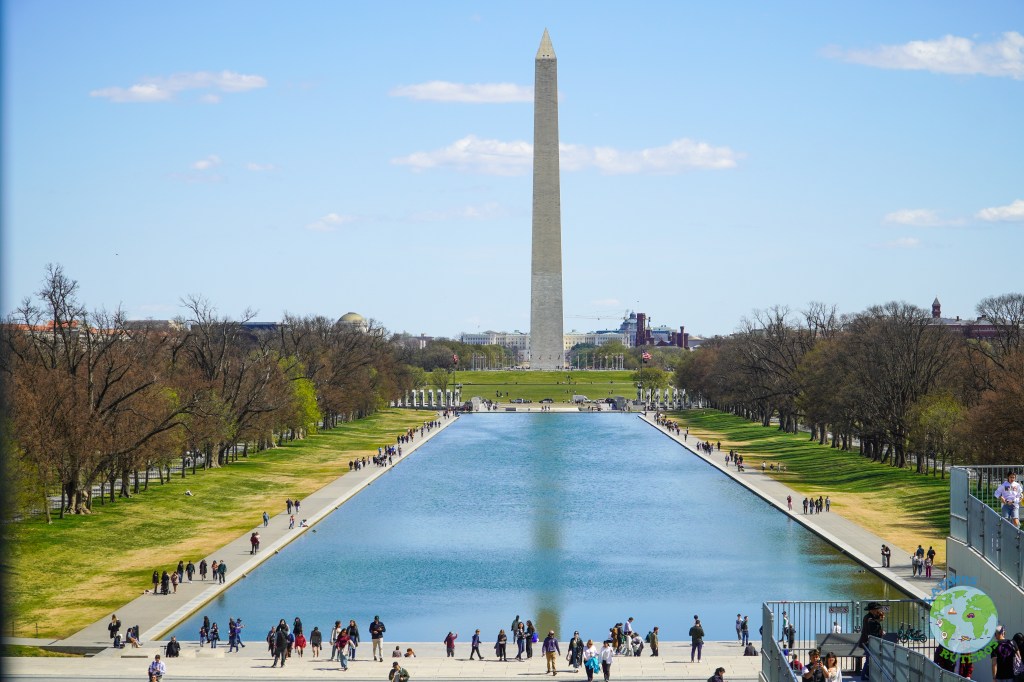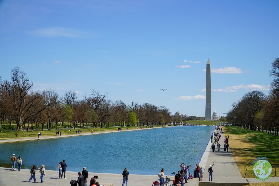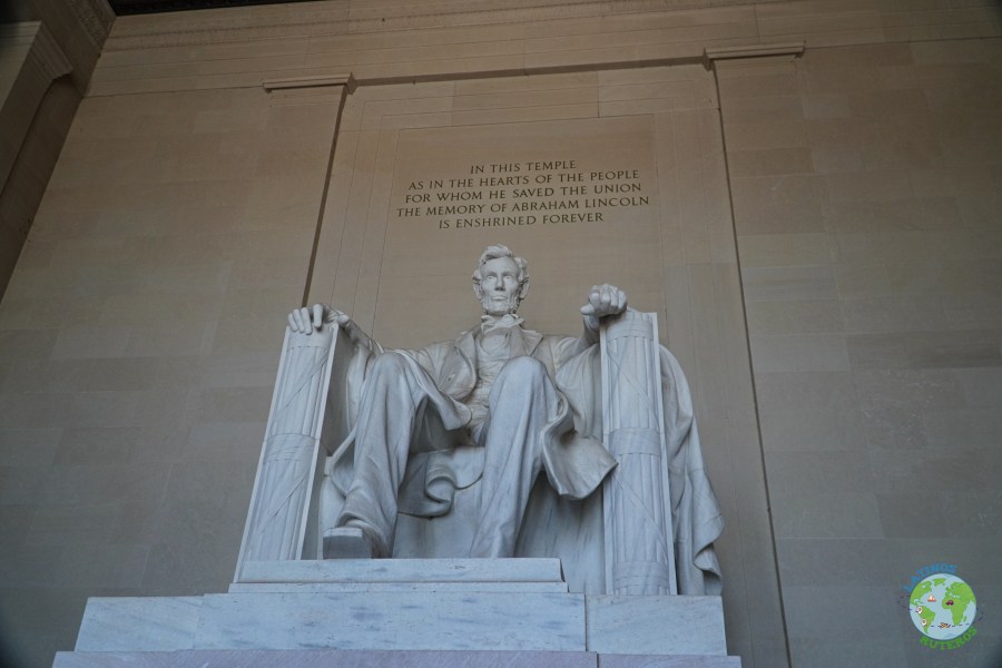 Seguimos con el recorrido hacia el Memorial de Abraham Lincoln, este edificio es un monumento estilo griego, en donde después de subir varios escalones, se encuentra la imagen de presidente, inmortalizado en mármol, sentado proyectando sabiduría y fuerza y mirando fijamente al gran estanque reflectante. Hacia el final de esta, se encuentra el gran obelisco blanco que es el monumento a Washington (169 metros siendo el obelisco más alto del mundo) y más hacia el fondo aparece la silueta del Capitolio.